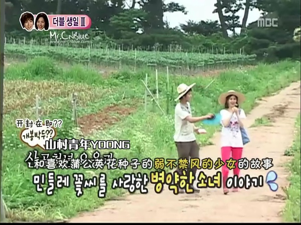 等待社長送上餐點時,兩小孩很囧的坐在大便旁邊(是不是偶像阿?)喝到大醬湯,容大頭讚美好喝又再補上夫人的也不差,夫人為確認再問一次容大頭卻不敢應聲,低頭進食閃開的眼神真是步步小心不刺激夫人的料理心阿!不過容大頭大白天就拐夫人喝米酒是哪招,喝完裝醉是泡沫劇看太多嗎?兩人開心地農務劇二部開演,怎麼我覺得他倆也是好適合這景,但是不要再作農務啦,容大頭已經搞得自己全身汗了!