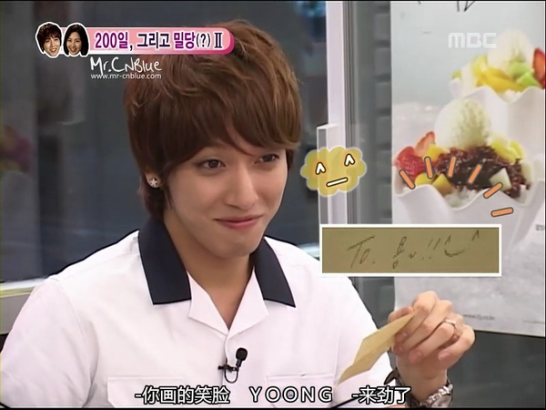 夫人拿出Trax的專集要送給丈夫,丈夫嘴上說部集度但就不是不收專輯,說要自己去買並且要到親筆簽名!丈夫送給夫人CNBLUE日二單,表示他們的單曲和夫人的日輯同日都有上Oricon榜,夫人的表情顯示她根本沒注意這件事,丈夫只好黯然望著遠山自我安慰「也不可能每天都注意榜單」容大頭你是每天都Fallow喔,你的即時收尋欄位就是CNBLUE少女時代鄭容和徐玄吧!夫人有空都再自我啟發,所以更新網上的速度稍慢。話說,夫人給的書你都看完了嗎?XD