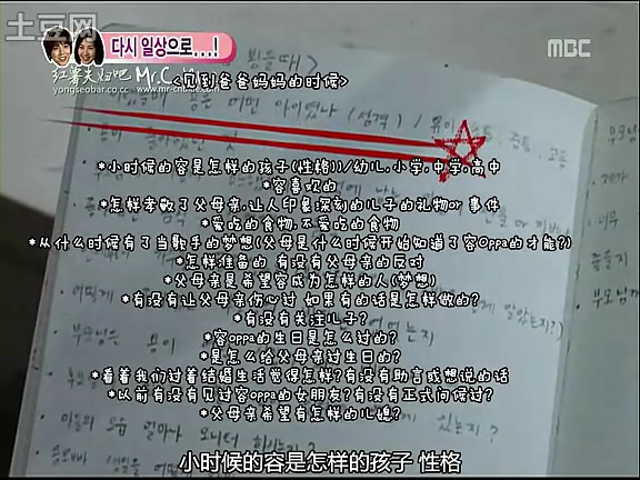 穿著親古送的情侶衣夫婦,今天是老公做早餐,老婆負責睡覺。被叫醒的徐玄好可愛,傻傻的樣子說要吃飯了!容和要求要看徐玄寫滿釜山行提問的小本子,徐玄一開始有些害羞,但是內心是想要給容大頭看的吧,所以一番推拉後拿出來給老公看了。小本子上密密麻麻的提問好像在做身家調查,連之前女友有無登門造訪都要知道,可能因為這點所以很掙扎要不要拿出來給容大頭看,你看看吧,玄妹妹果然還是很在意容大頭的過去。XD