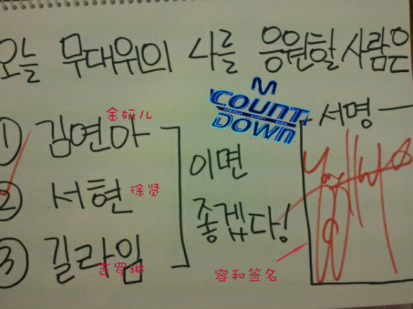 ↑ 翻譯:今天的MCD_鄭容和還在相思徐玄?需要徐玄應援的CNBLUE的舞台將在6點現場直播 @ 小雨