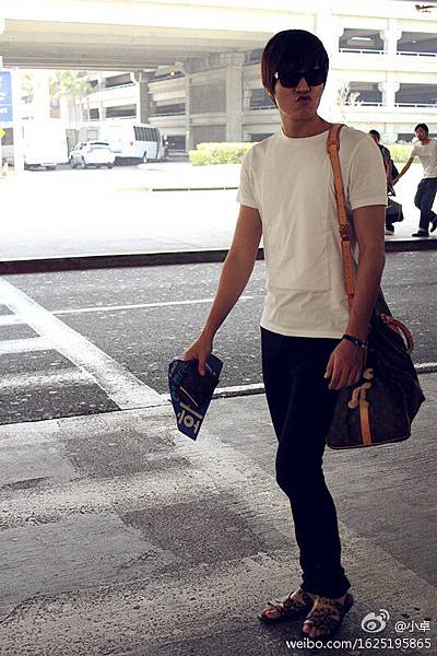 俊表大人已經換下代言裝,穿的超隨便,不是啦,是簡單風啦!!最吸引人注意的是他腳上的拖鞋。可是我看到他的包包,好希望這是我的生日禮物喔!!(你當你是憑甚麼姊喔XDD)