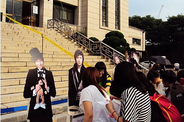 結果會場外面的俊表大人不是給大家合照用的!!那邊有四個李敏鎬的不同時期的代表人物,分別是李敏(你誰阿??)、具俊表、全鎮鎬、李潤成。看你對誰說就把自己的基本資料丟進那角色前面的箱子,俊表大人會抽出一張然後打電話給你問問題喔,答對了就可以拿自己的手機上台合照!!(這個活動也太有創意了XD)