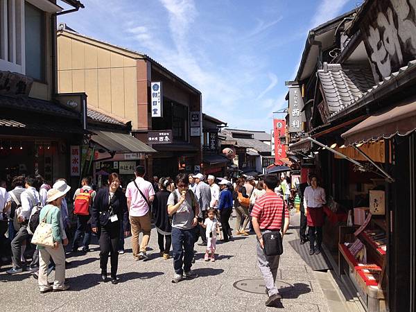 清水寺正面那條蜿蜒山路兩旁滿滿的商家,他們很親切,一直說著日文,哈哈哈。